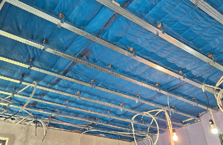 - для премиум-зон (мастер-спальня и первый этаж) - каркасная система «Барклайн Премиум Плюс» (ΔRw 27 дБ) и перегородки «Барклайн Премиум» (ΔRw 63 дБ);