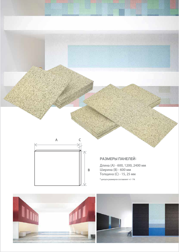 Благодаря пористой структуре и высокой плотности панели эффективно поглощают звуковые волны во всем диапазоне частот, одновременно выдерживая высокие эксплуатационные нагрузки.