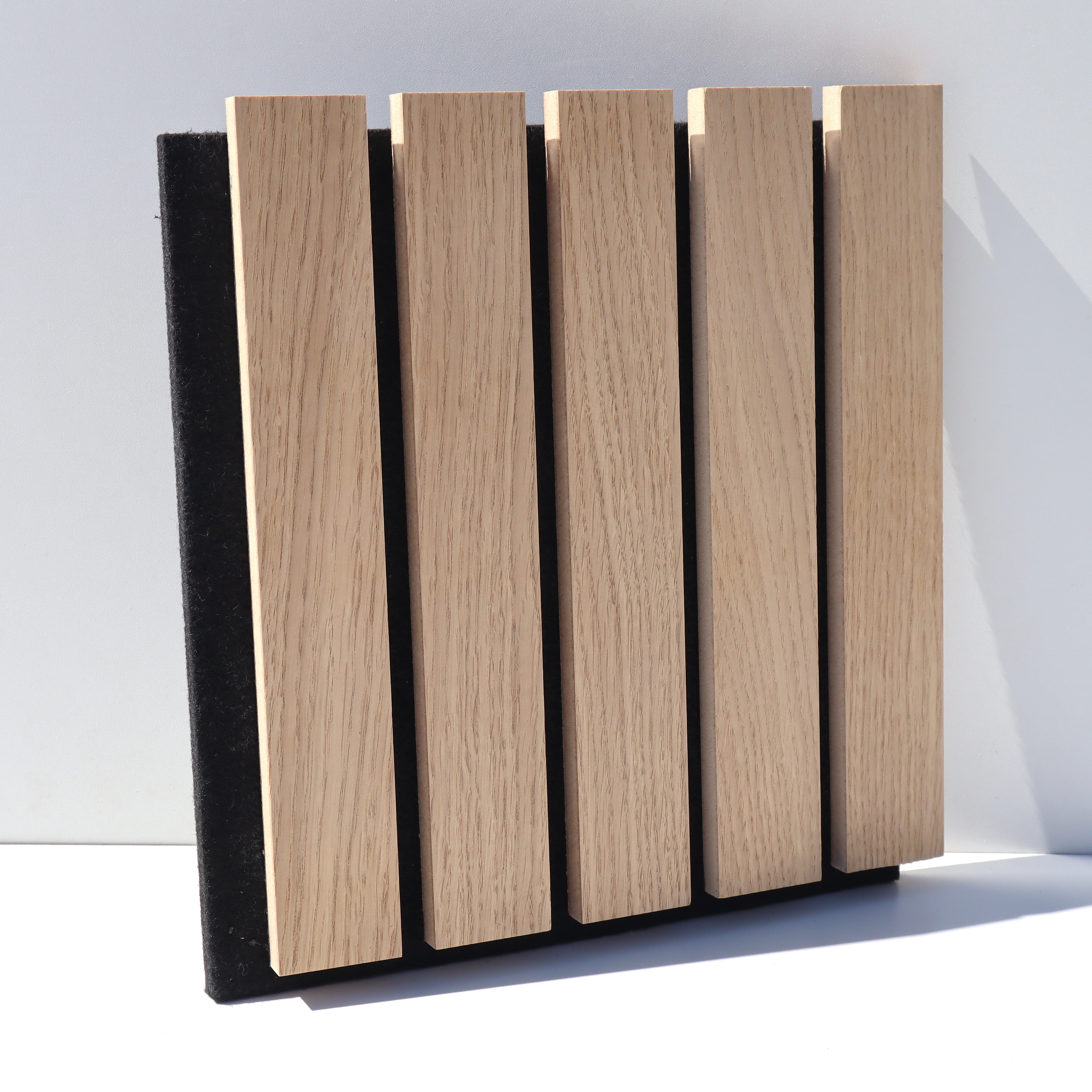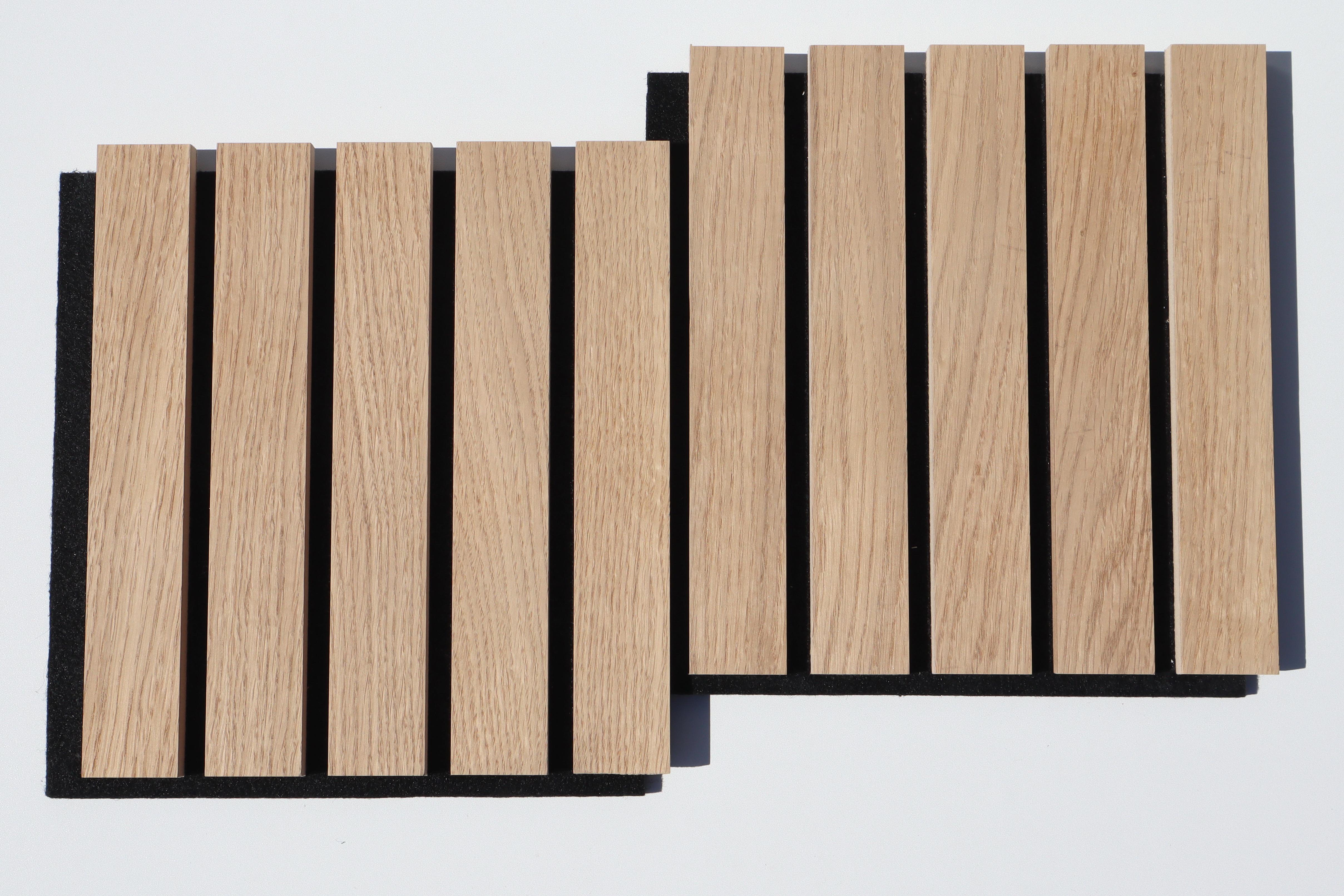 Акустическая панель Рауфон Планк толщиной 20мм, это двухслойная панель, состоящая из звукопоглощающего черного войлока повышенной плотности и декоративных реек шпонированных дубовым шпоном.