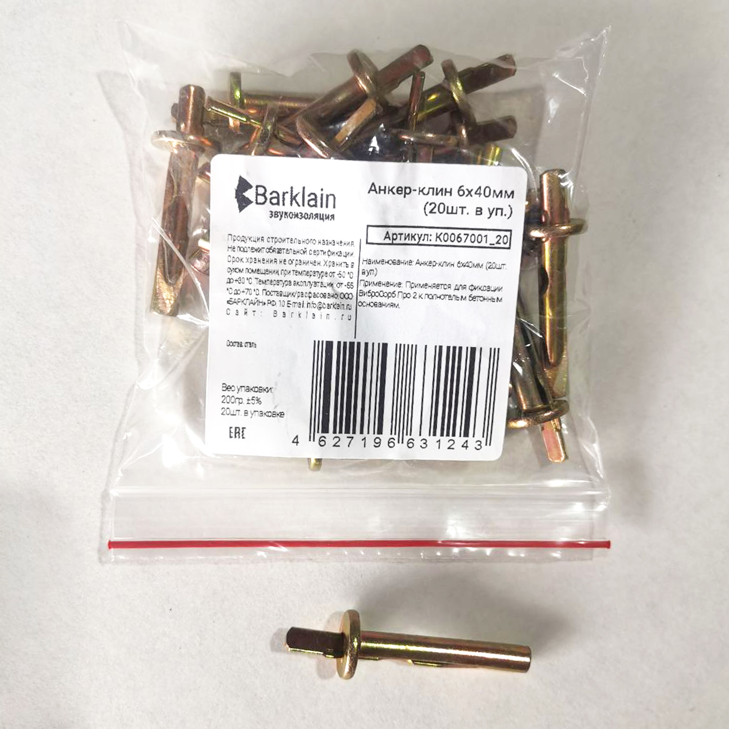 Барклайн анкер-клин размер 6х40мм количество в упаковке 20шт