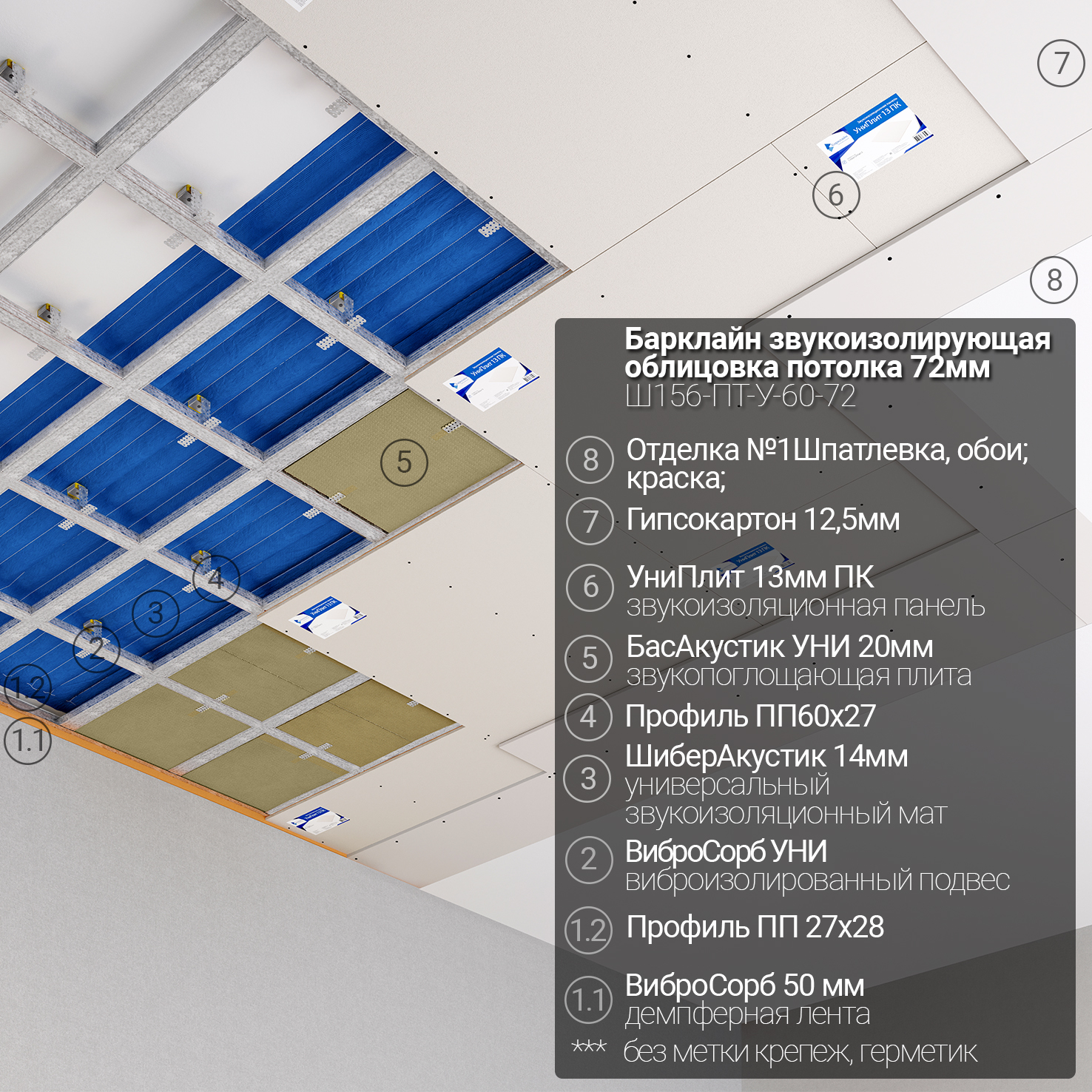 - Звукоизолирующие облицовки потолка