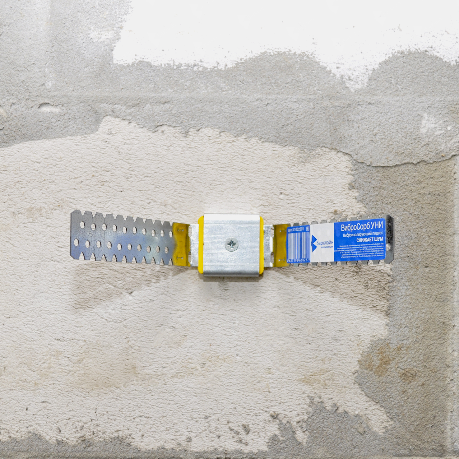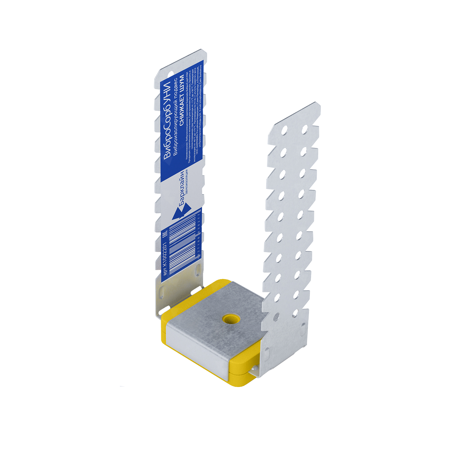 Виброизоляционное крепление ВиброСорб УНИ – Виброизоляционное крепление профессионального уровня эффективности. Сквозь виброизоляцию производится закрепление к поверхности. Благодаря виброизолированному креплению звук не проникает с поверхности стены и потолка на возводимый каркас.
