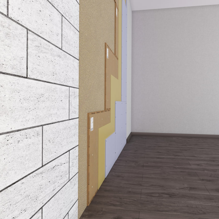 Бескаркасная система звукоизоляции, простая в монтаже, всего два слоя монтируется прямо на стену.