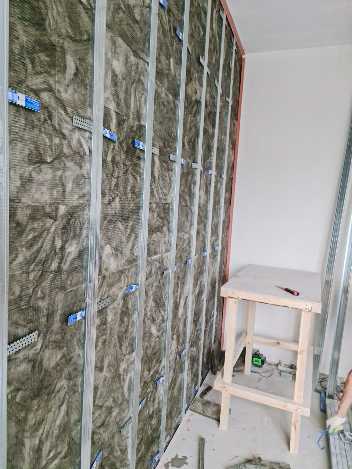 Внутри каркаса прокладываем эл.кабели, трубы, профессиональная звукоизоляция и выравнивание.