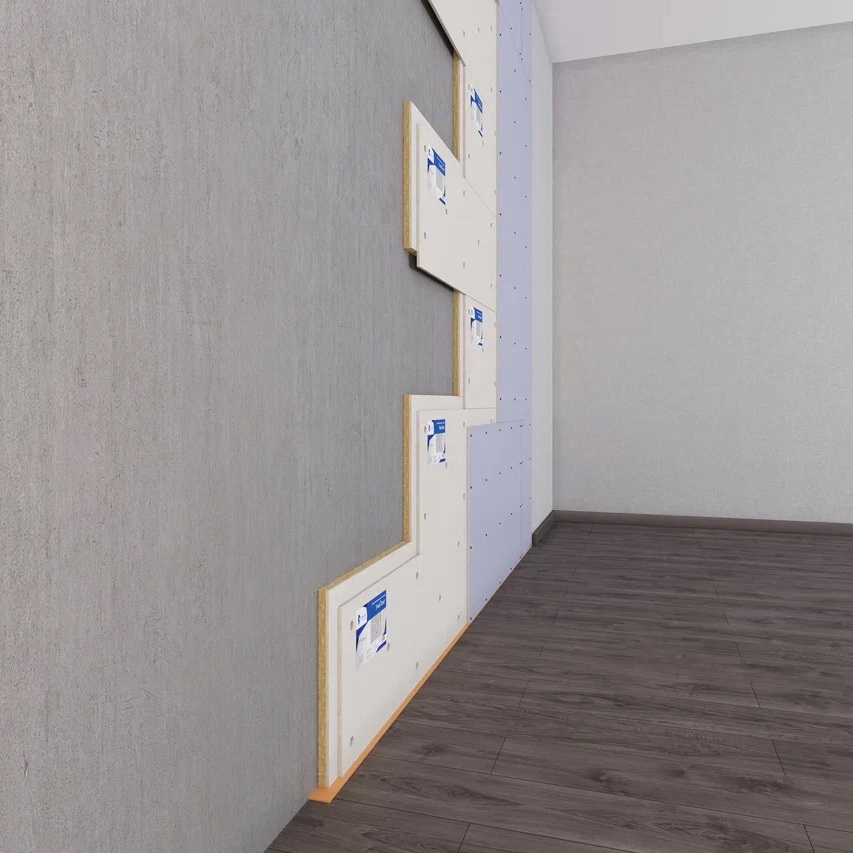 Бескаркасная система звукоизоляции, простая в монтаже, всего два слоя монтируется прямо на стену.