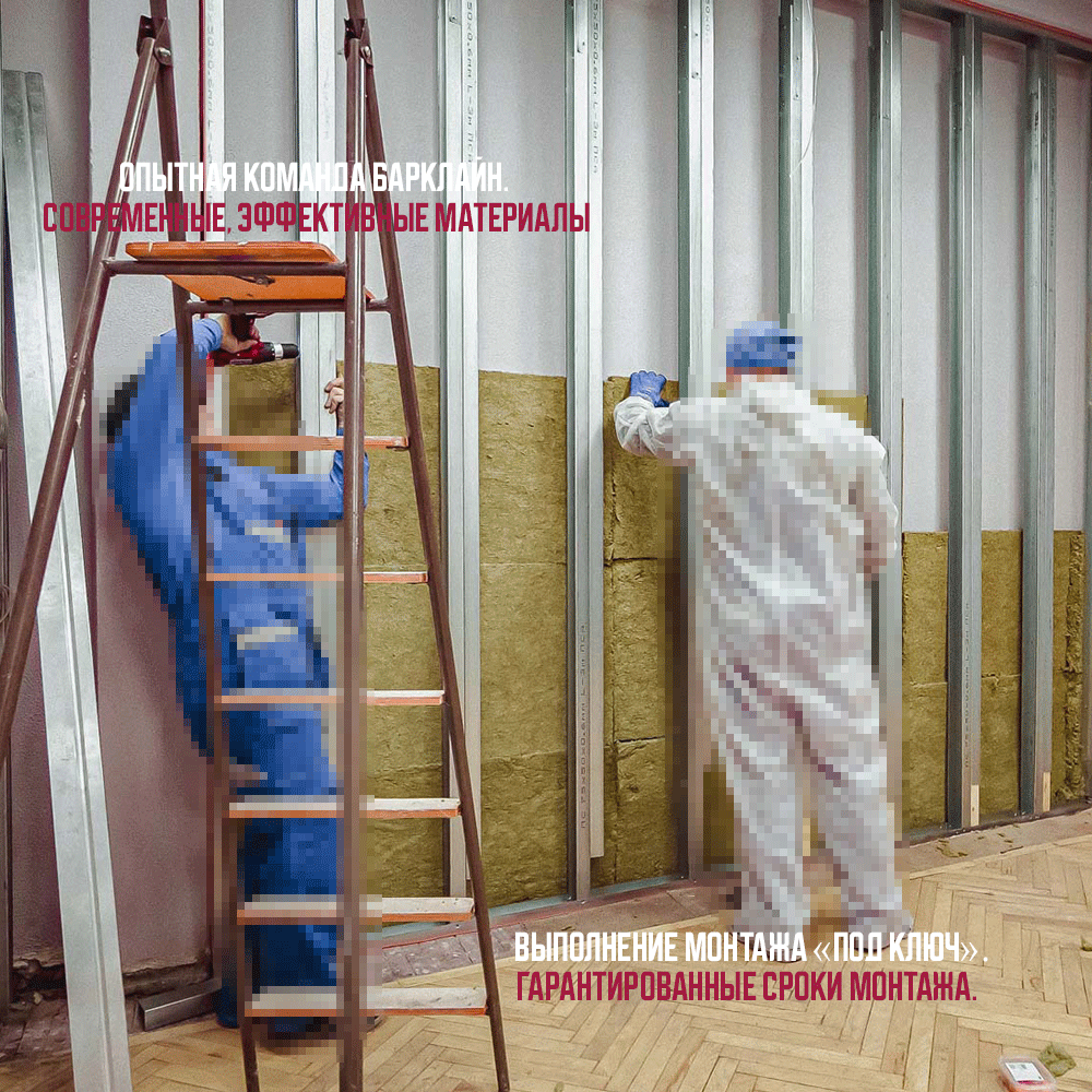 Звукоизоляционная перегородка «Барклайн Барьер Мембрана», на каркасе, быстрый монтаж, прокладка проводки внутри каркаса.
